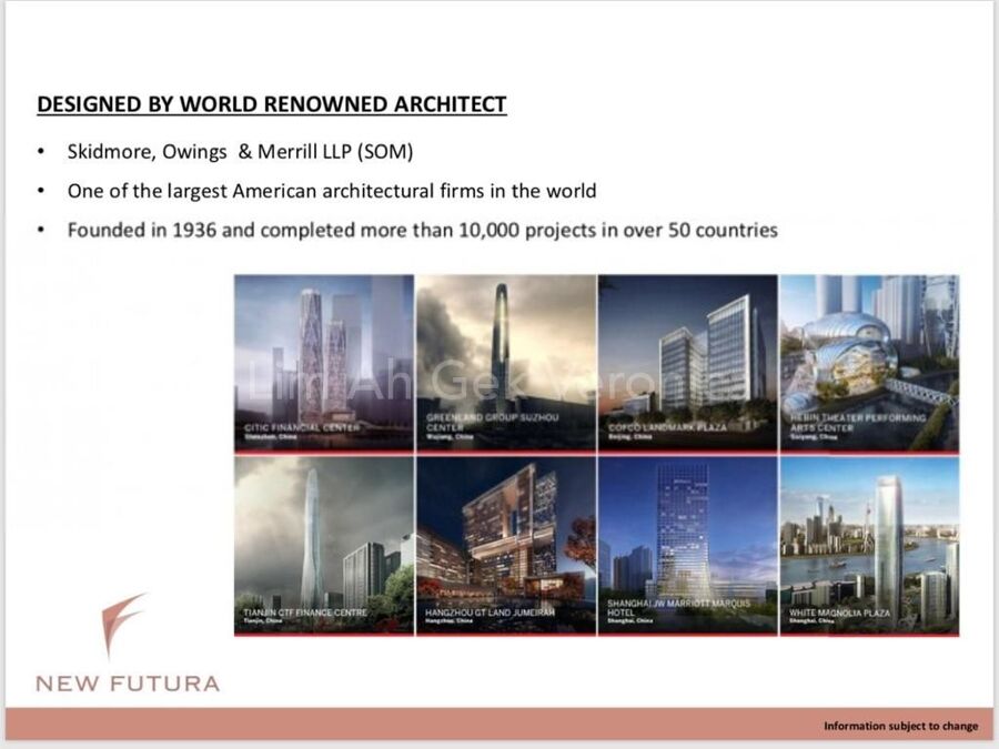 Rebuilt by CDL into now the futuristic designed by the famous architect Skildmore Owing & Merrill LLP who designed the tallest bldg in Taipei, Dubai, NewYork , Singapore & others