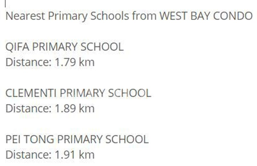 Nearest Primary Schools from WEST BAY CONDO