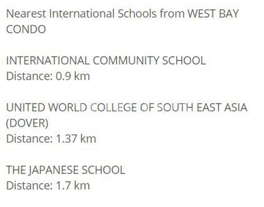 Nearest International Schools from WEST BAY CONDO