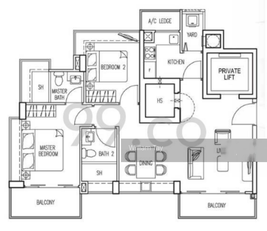 This unit offers a decent sized balcony, big enough for a table for 2. It is partially furnished. The layout is good and spacious, with 2 good sized bedrooms. The balcony and many windows allow light and breeze to come in generously. It also offers private lift concept, not found in most condos in this area.