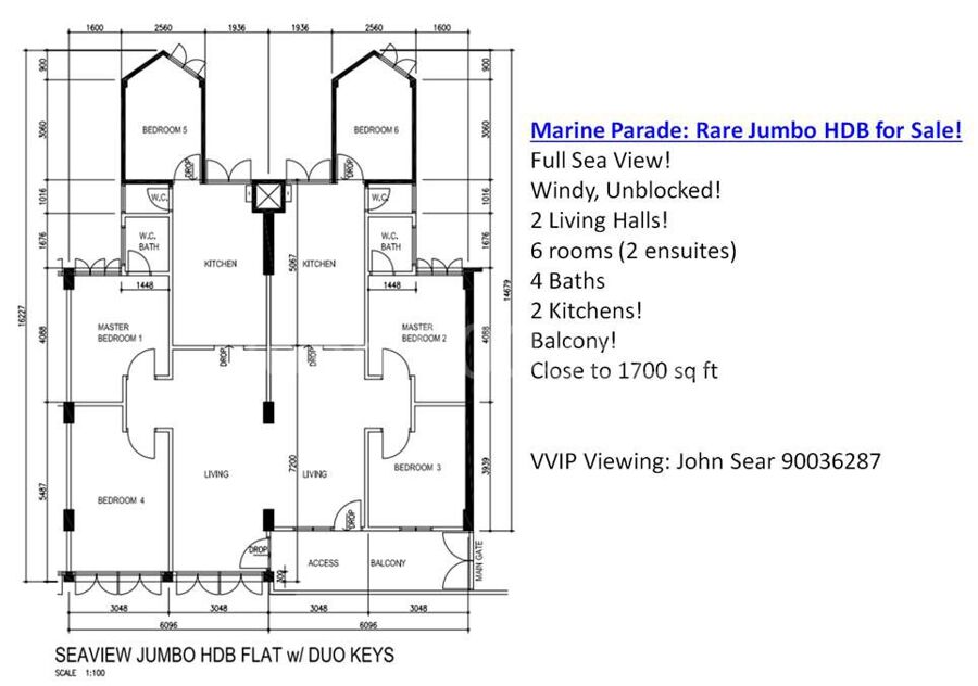 Unique HDB with 2 units of 3room HDB! 6 bedrooms, 4 bath, 2 Halls, 2 Kitchens! Great Full Seaview!