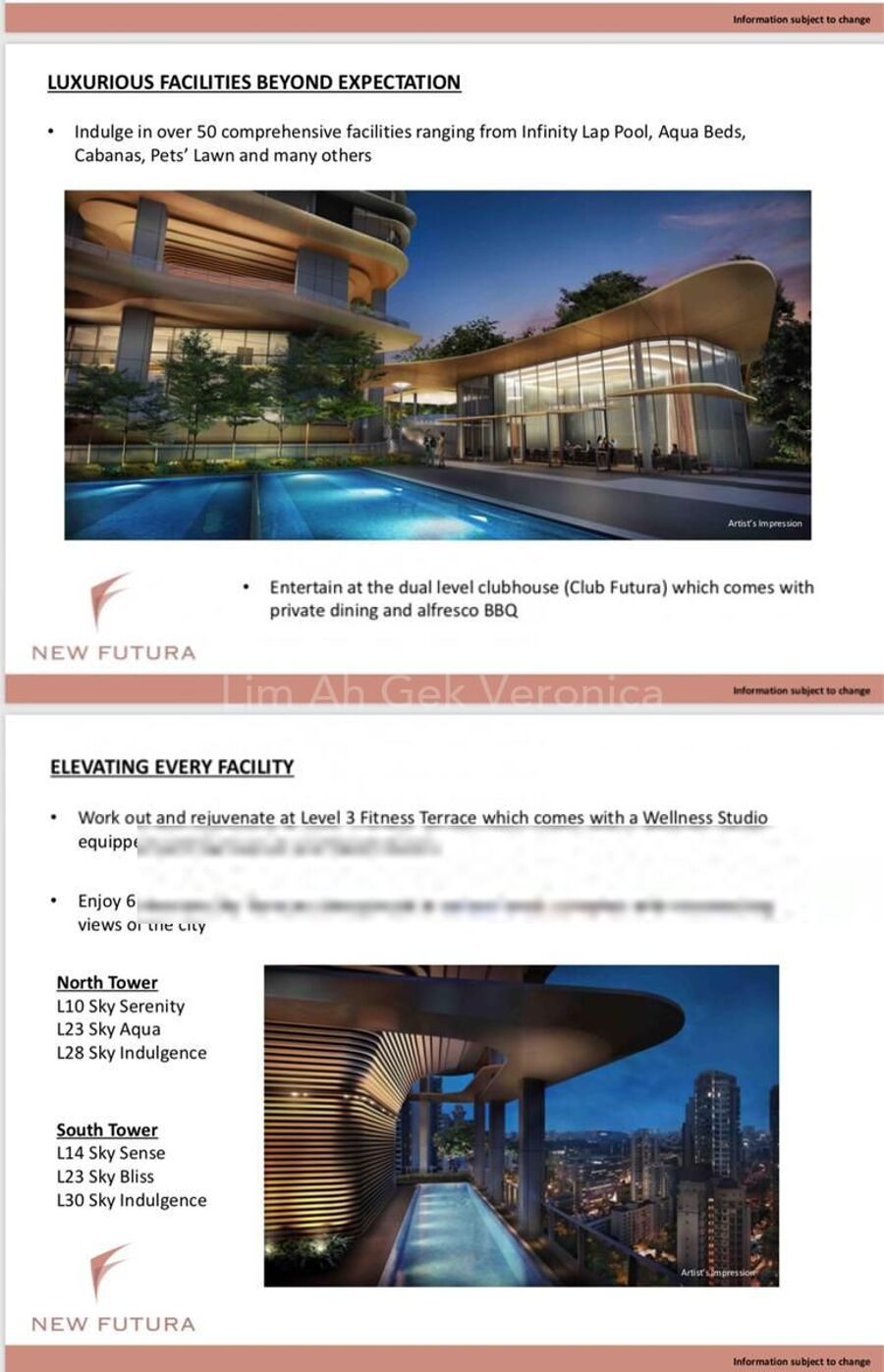 Facilities : pool n clubhouse on ground and also sky gardens and hot spa on upper floor . South tower on 30th, 23rd,14th n 3rd floor