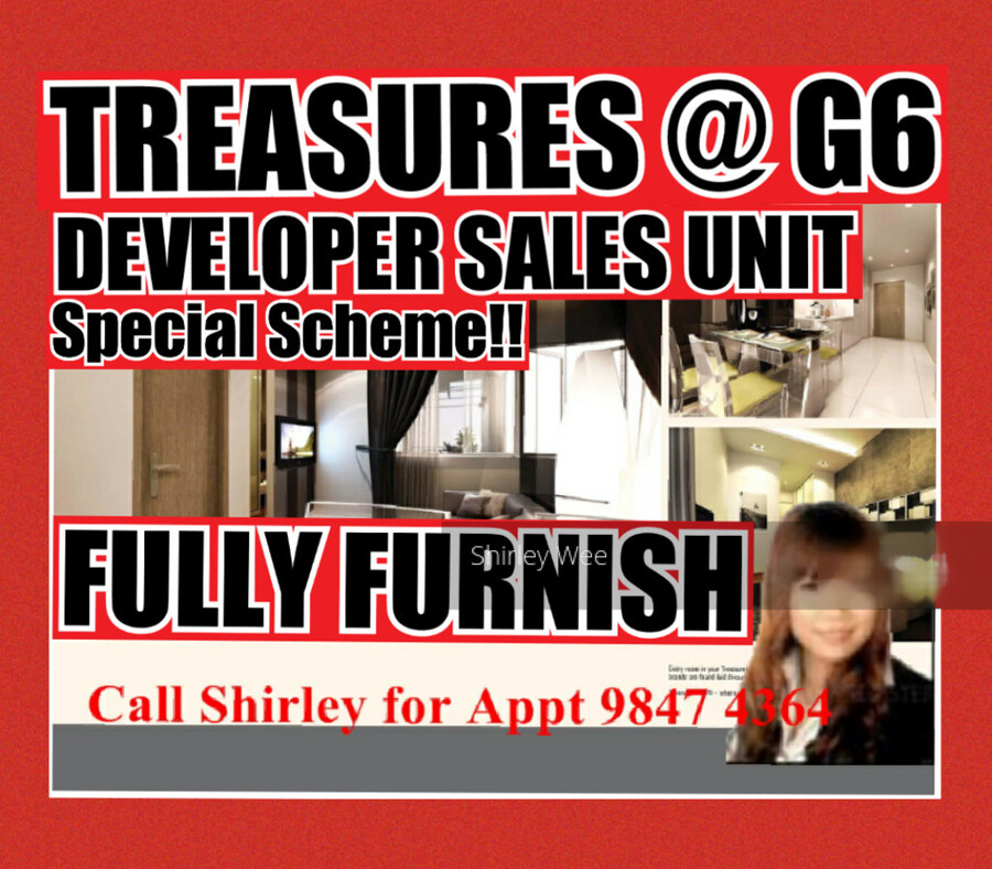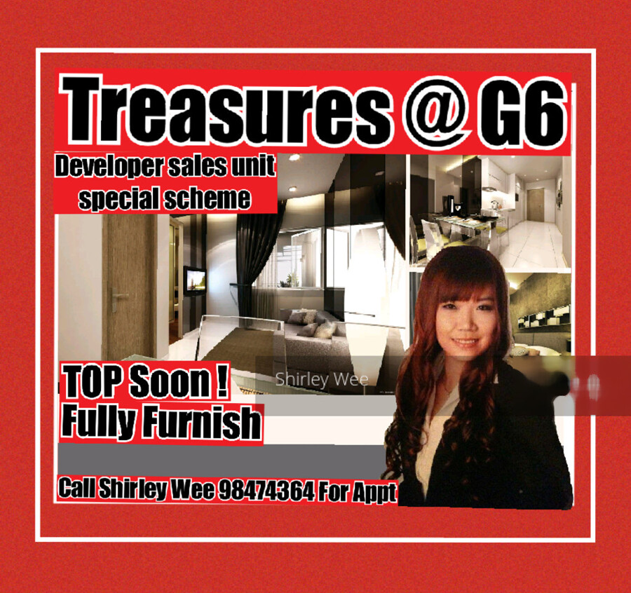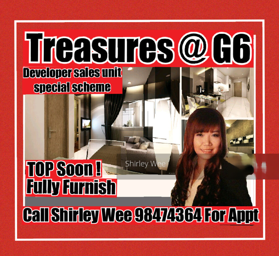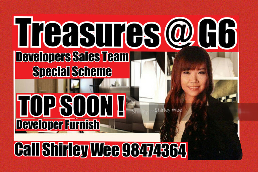 Facilities at Treasures @ G6 include Swimming Pool, Pool Deck,Gym,Sauna room and Barbecue Area with barbecue pit and Car park.