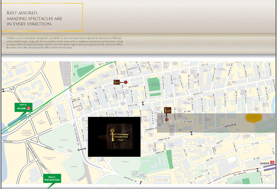 The Treasures @ G6 is near to NTUC Fairprice and Cold Storage. It is also close to Leisure Park, Golden Mile Complex and Geylang Serai Malay Village.