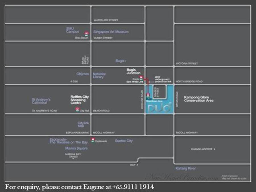 - Good Connectivity – islandwide via MRT and expressways. DUO is served by Bugis MRT station (via direct Underground pedestrian link ways).
