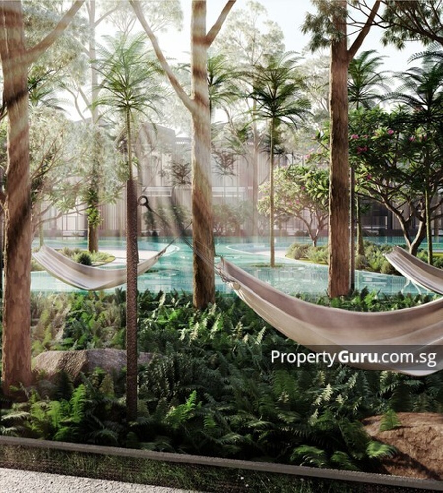 * Island BBQ, Island Pool Deck; Aqua Gym facilities; * 50m lap pool, Spa pavilions; Floating Boardwalk; Firefly Path; and more than 10 thematic gardens for residences to enjoy.
