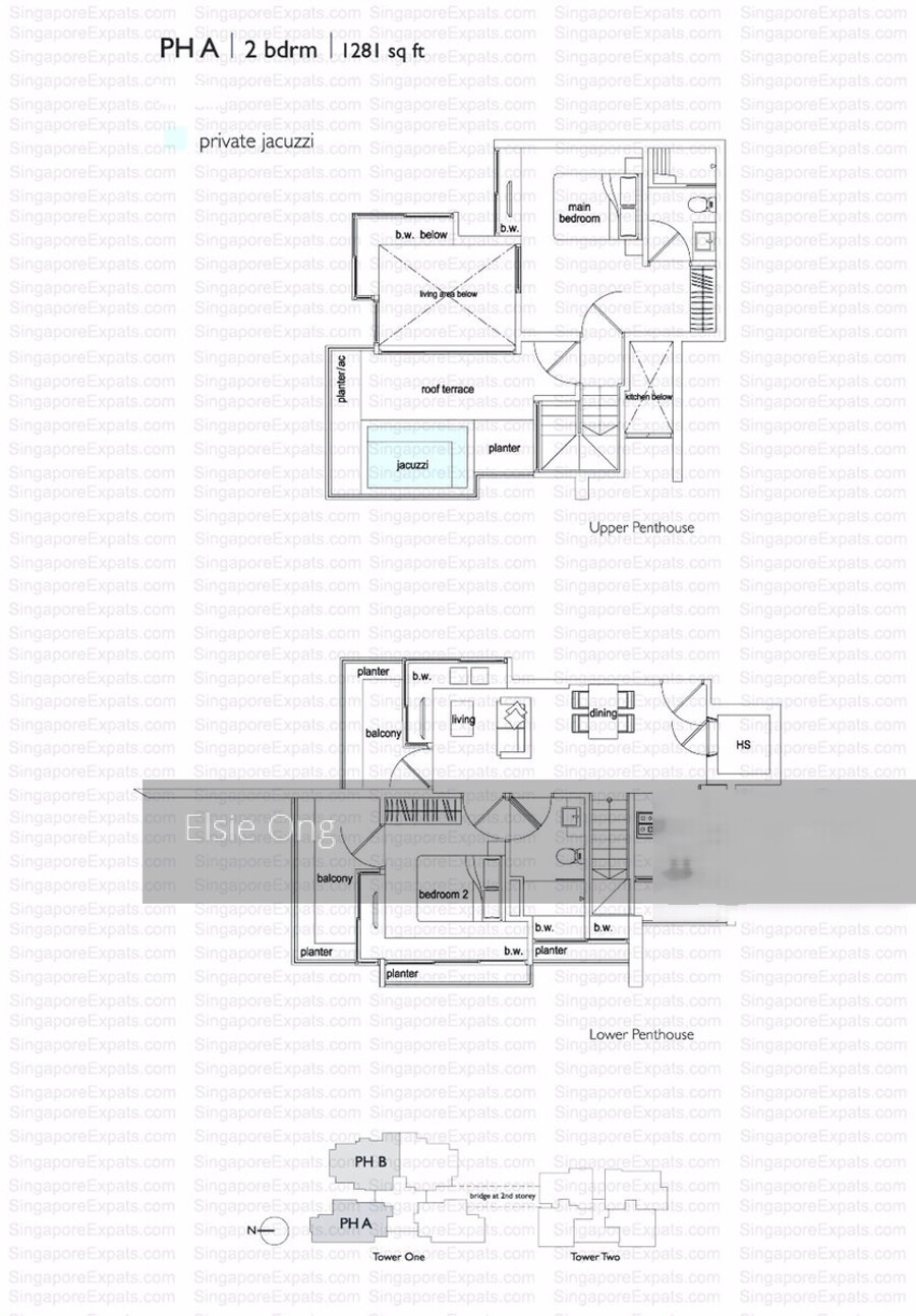 2-bedded Freehold penthouse in central location. Unblocked view. High ceiling. Spacious and bright unit. Private jacuzzi