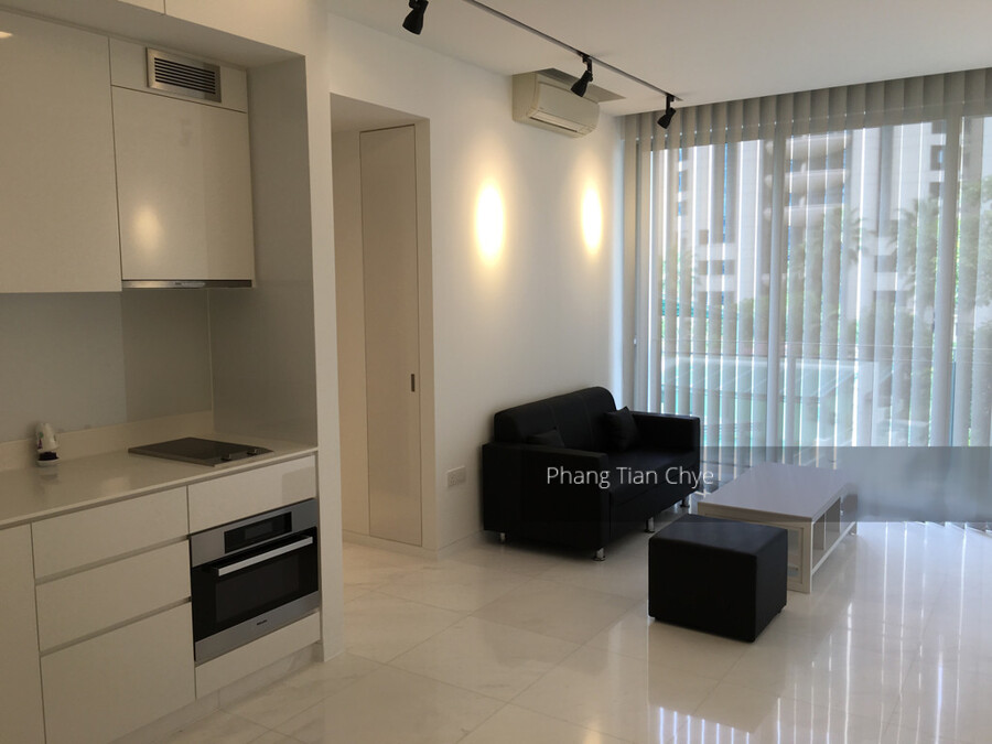 Partially furnished with a queen size bed, sofa, coffee table and built-in white goods
