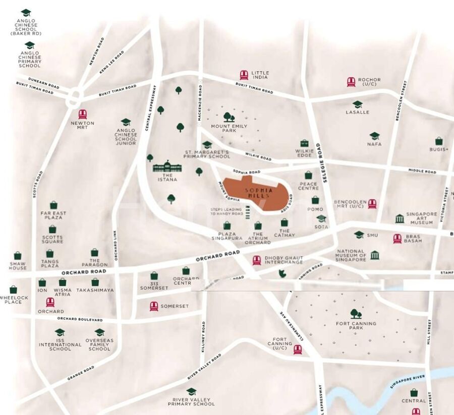 One of Singapore’s largest developers with an extensive portfolio of residential properties. Located well within the prime Core central region in District 9, Sophia Hills condo is a 99 leasehold development to be built on a rare sprawling land size(approximately 23,770.5 sqm, 255,865.66 sqft)and will feature 493 residential units across 1-Block of 7-Storey, 4-Blocks of 6-Storey, 1-Block of 5-Storey and 6-Blocks of 4-Storey residential building. Standing tall on top of Mount Sophia and set by the private residential area, Sophia Hills is also located right at below or just 5 minutes walk away from Dhoby Ghaut MRT interchange, Plaza Singapura and The Cathay. Sophia Hills is without a doubt a great place to live.