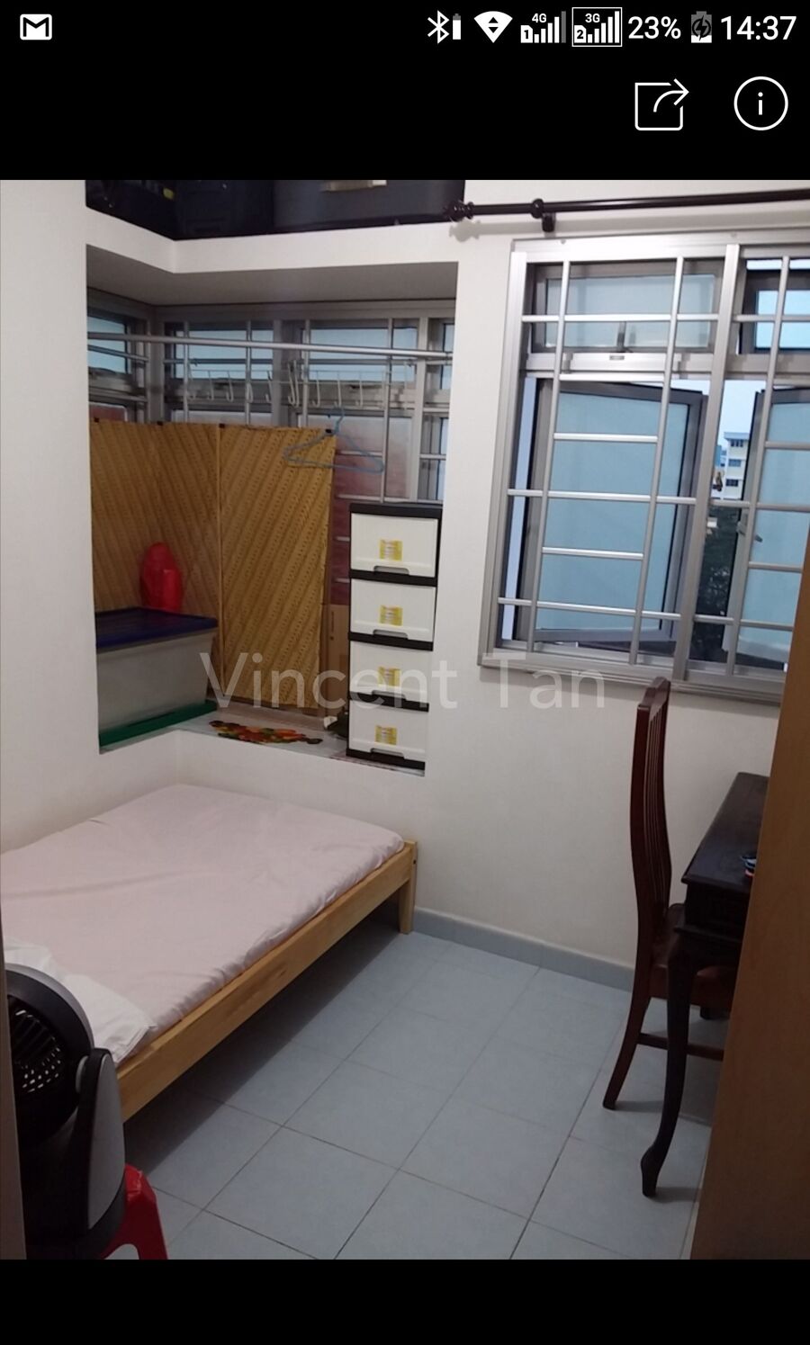 - got single bed, wardrobe, fan inside