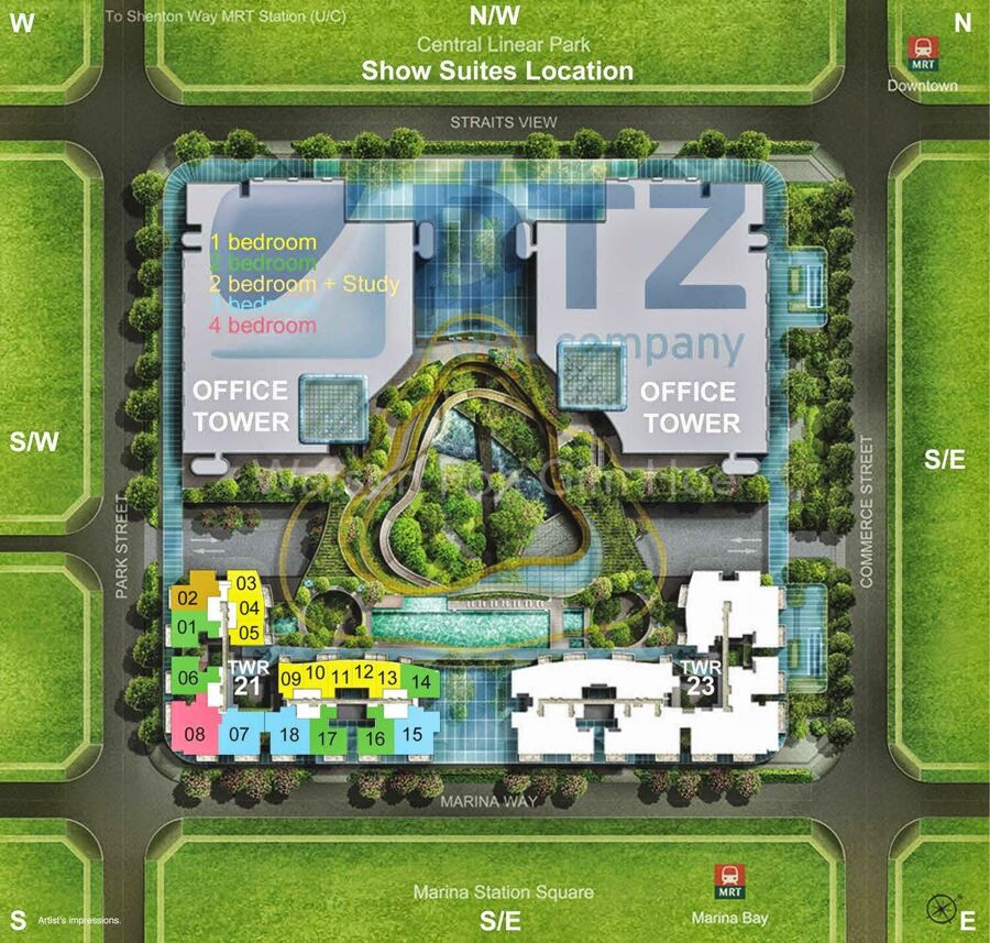 • A highly coveted location flanked by two parks, ie Central Linear Park and Marina Station Square**