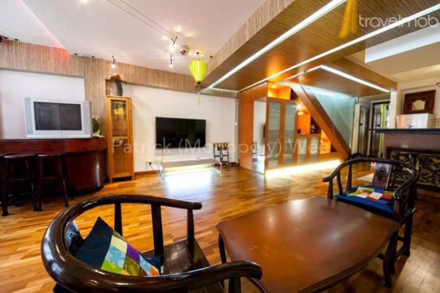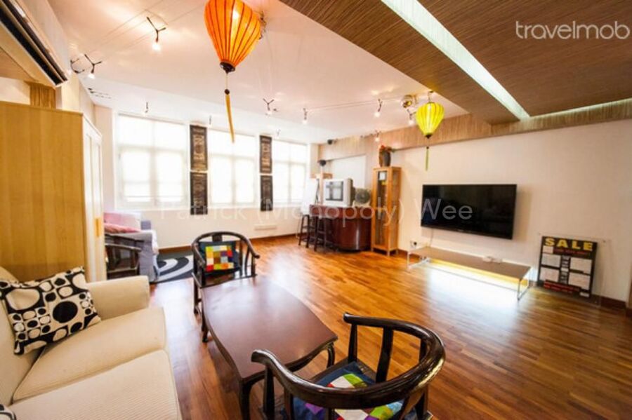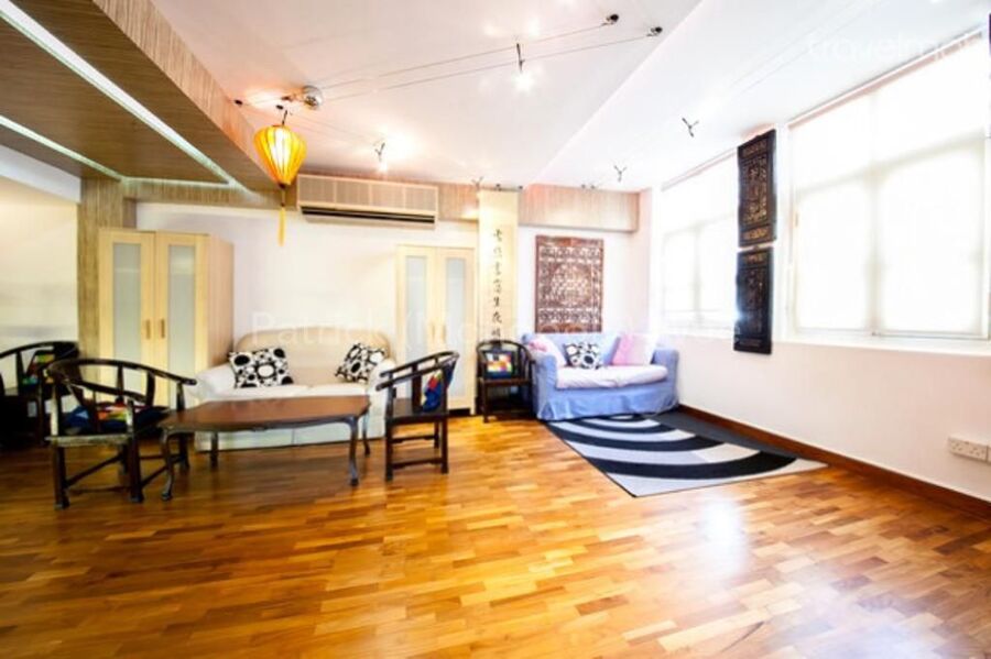 Maisionette apartment approved SOHO usage. Above shophouses. Along 1 of 3 streets in Sg that is pedestrianized on weekends.