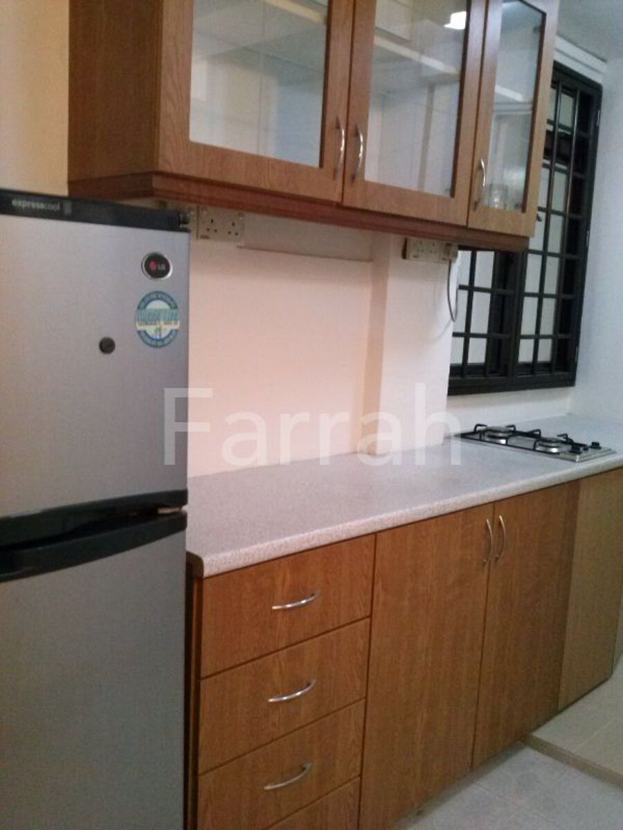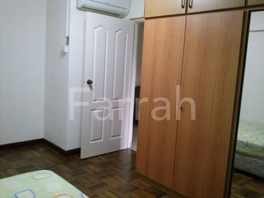 As you may be able to see from the photos & the description: this flat is almost fully furnished. Lots of buses-7min to Suntec. Bus routes include : Marine Parade, Changi, Orchard Rd, Siglap areas. East Coast Park is a km away & a short-cut to the Stadium & Kallang Wave Mall. A public swimming pool is diagonally across from this block. Eateries at the next block. NTUC mini-mart, ATMs, clinic within the vicinity. This 3-rm HDB has 2 bedrooms w air-con, 1 utility rm tt can be used as a dining area or study & a kitchen equipped w fridge, washing machine, 2 gas-jobs. Bathroom & toilet have separate entrances. 1 King-sized bed, 2 single-beds & floor to ceiling wardrobes in bedrooms. A Queen-sized sofa-bed in Living rm. New glass dining table & 8 dining chairs.