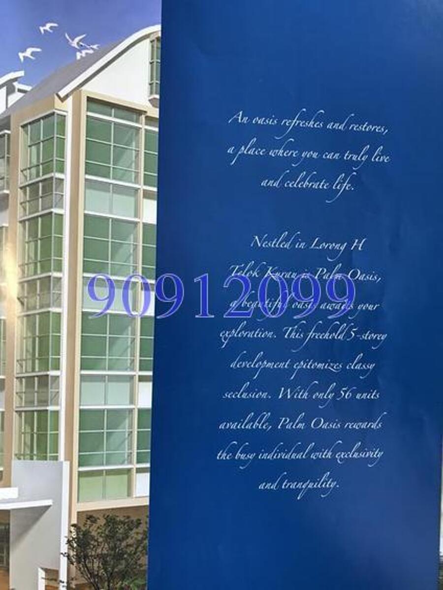 Palm Oasis is a freehold apartment located at 51, Lorong H Telok Kurau, Singapore 426052, in district 15, near Eunos MRT, Kembangan MRT and Paya lebar MRT Stations. It has a total of 56 units and it was completed in 2009. It is close to Kembangan Plaza and Eunos Crescent Market and Food Centre.