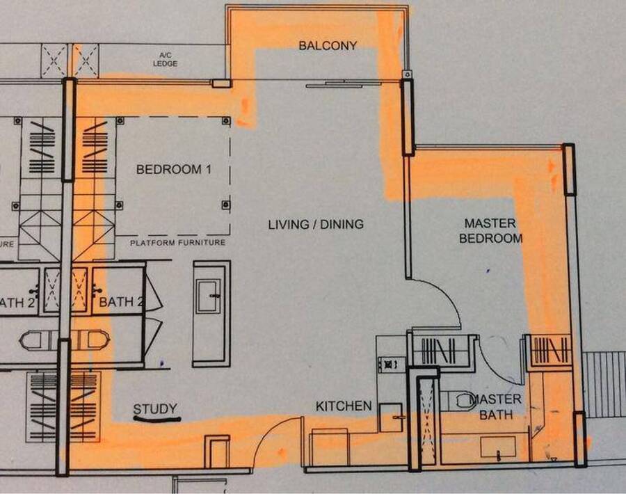 High ceiling with platform furniture built-in