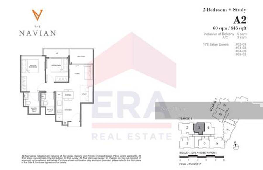 2 Bedroom + Study - 646sqft - 657sqft