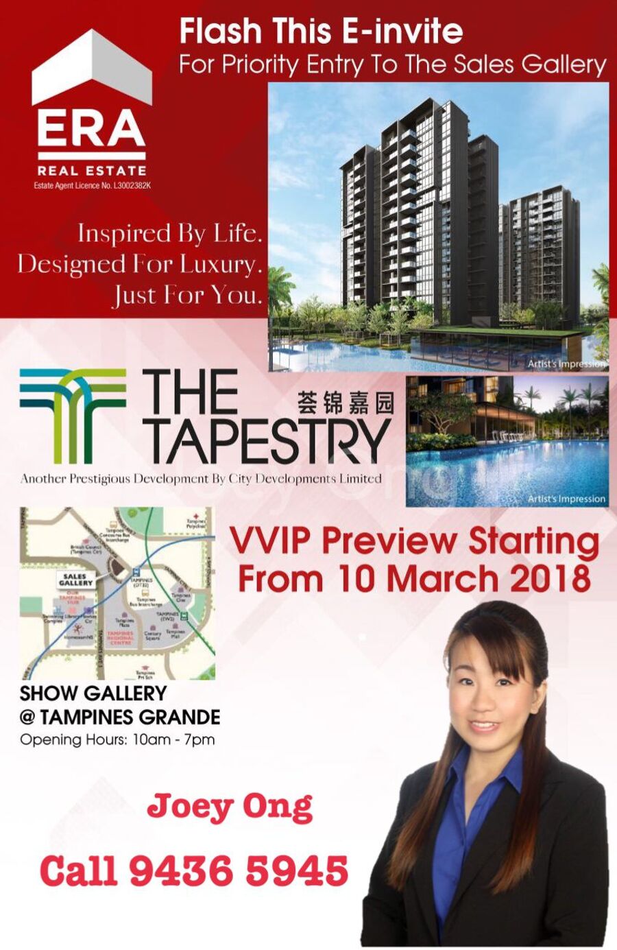 Call Developer Sales Rep ERA Joey Ong @ ***** to register for your VVIP Preview now!