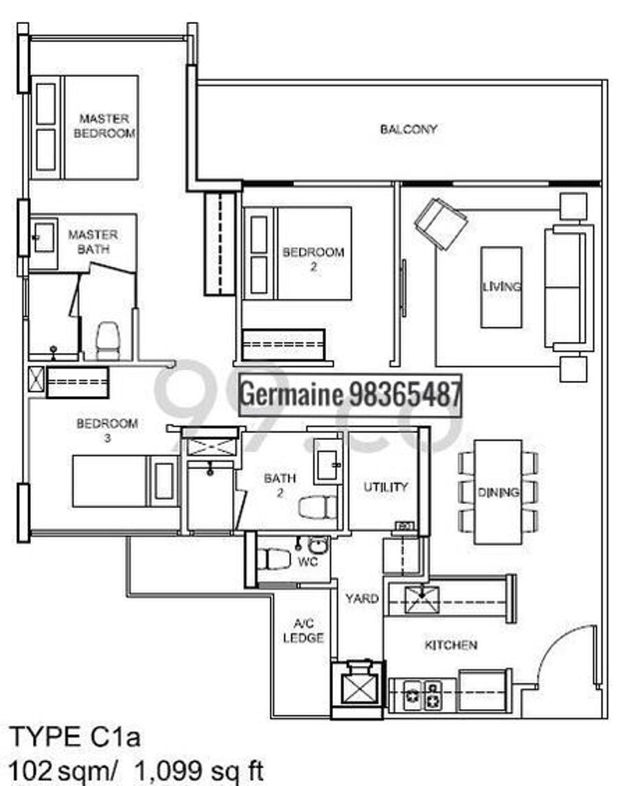 Good layout & spacious unit 1098 sq ft