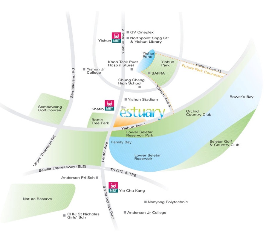 Proximity to Khatib MRT, parks (Bottle Tree Park, Lower Seletar Reservoir Park, Yishun Park) and amenities (Orchid Country Club, Yishun Stadium, SAFRA Yishun, Khoo Teck Puat Hospital, Chung Cheng High School, etc)