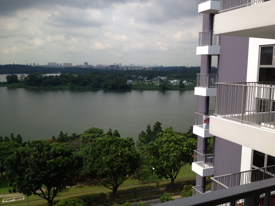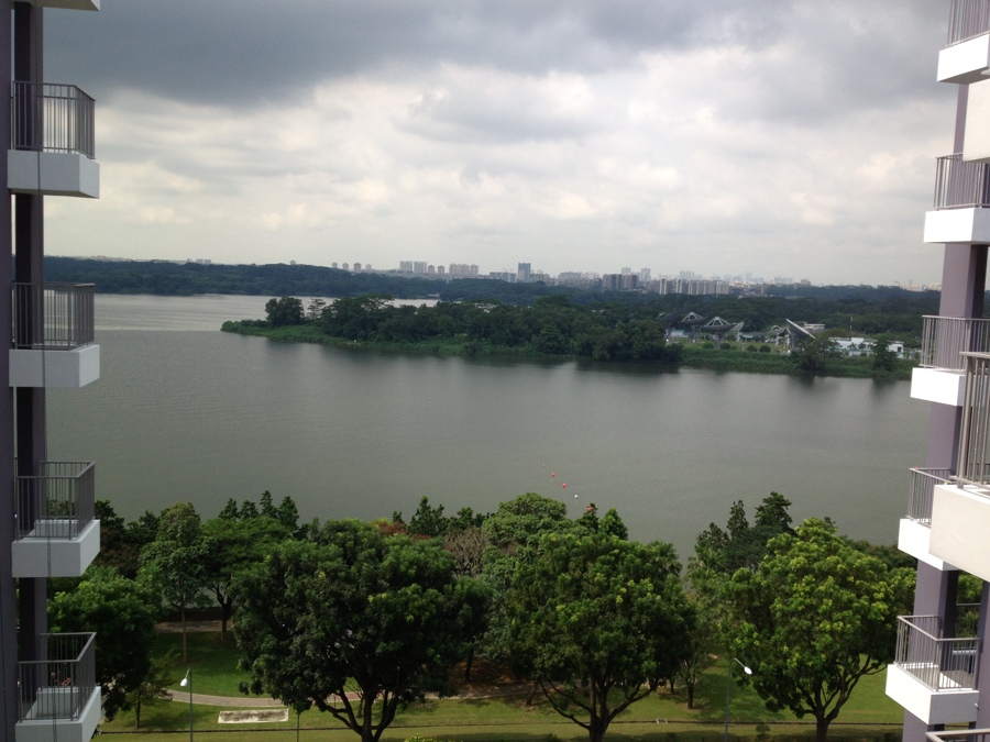 Tranquil view of the reservoir and greenery.