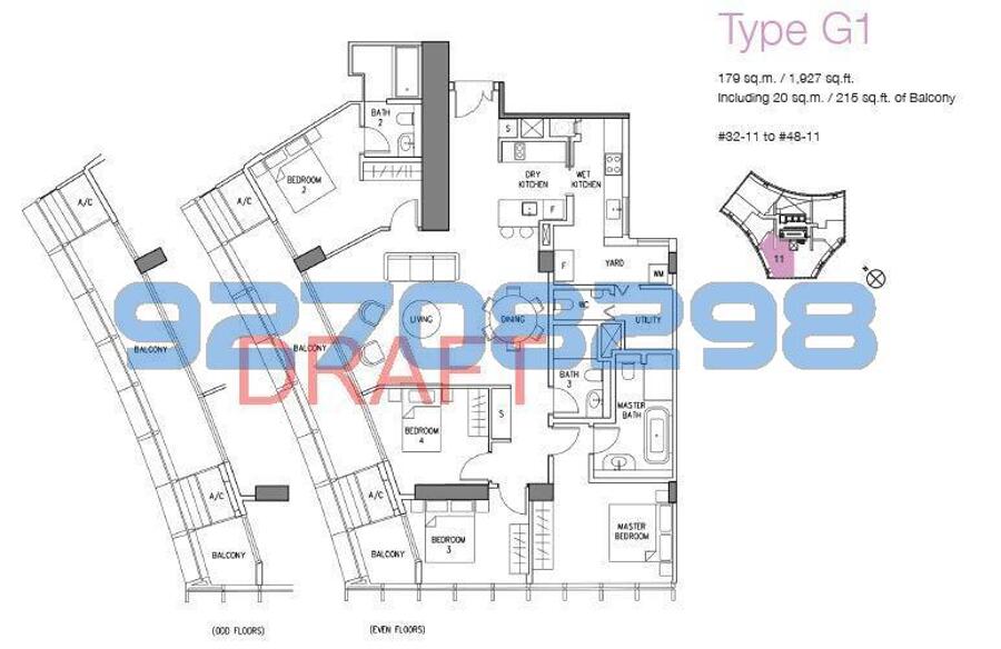 4 bedroom (1841/1927sqft) from 32th floor