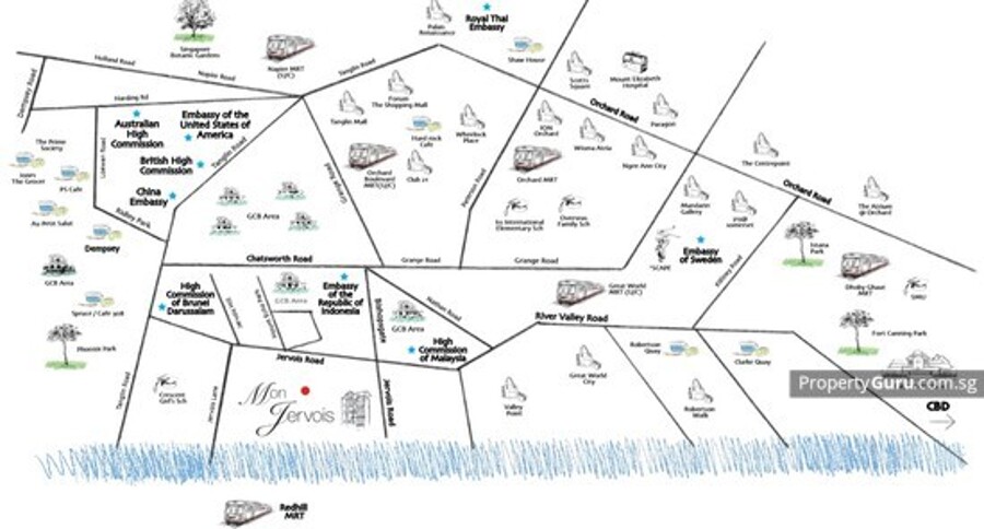 Mon Jervois is 109-unit residential development nestled in the prestigious enclave of Jervois enclave and having embassies like Malaysia High Commission, Embassy of the Republic of Indonesia, High Commission of Brunei Darussalam as its neighbours. Here, residents of Mon Jervois can take a break from the hustle and bustle of city life with its serene environment. Minutes to to City.