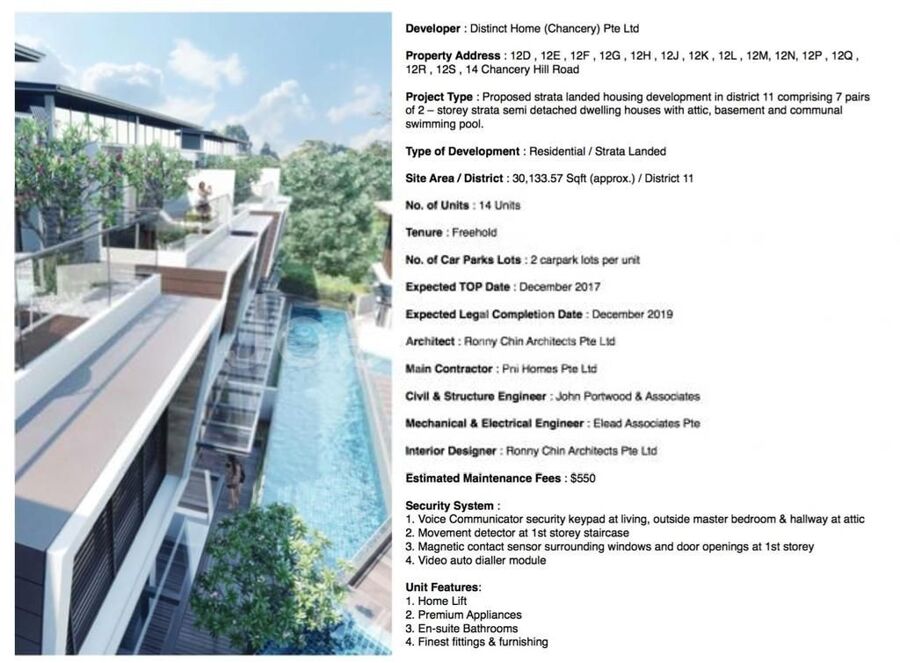 Seven pairs of two-storey FREEHOLD semi-detached house located at 12 Chancery Hill Road in District 11.