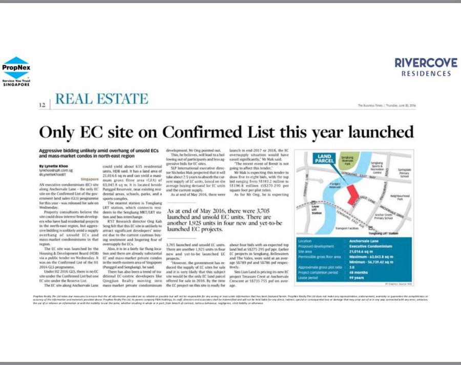 Rivercove Residences, the One & Only EC to be launched in 2018!