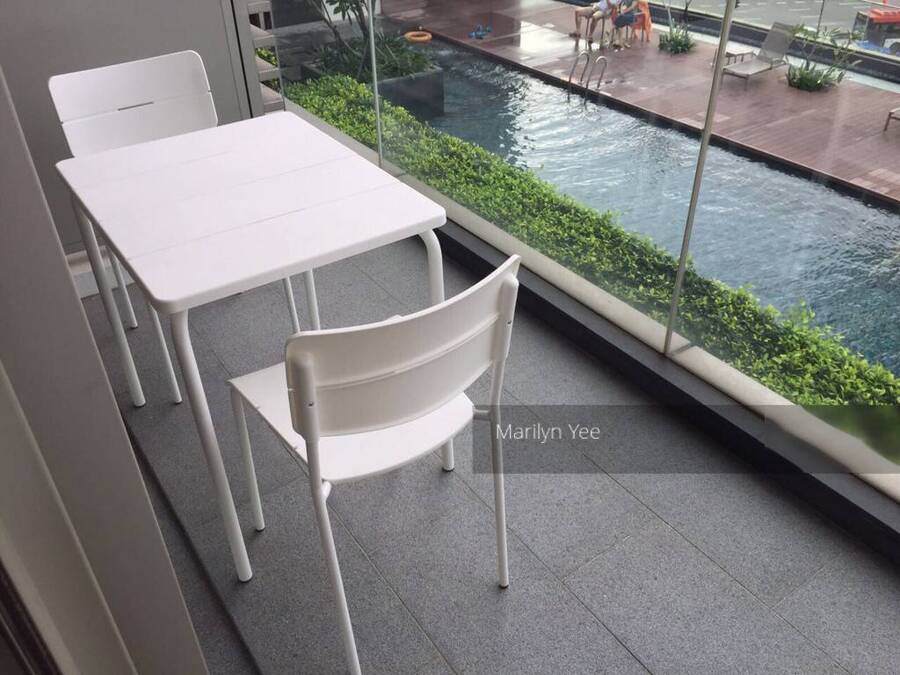 This is a 1-bedroom unit facing greenery and the Swimming pool. It has an open-concept kitchen which is fully equipped and living opens into the balcony.