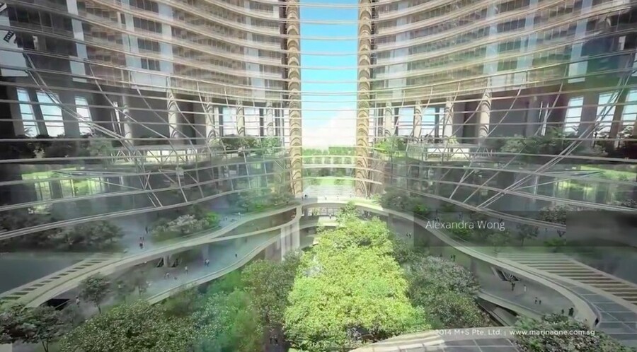 Marina One Residences reinforces S'pore "City in a Garden" concept with its architecturally unique "green heart" of biodiversity garden including its access and outlook to adjoining 2 green lungs at Marina Station Sq and Central Linear Park, as well as to the necklace of the civic, cultural, leisure and dining attractions around Marina Bay