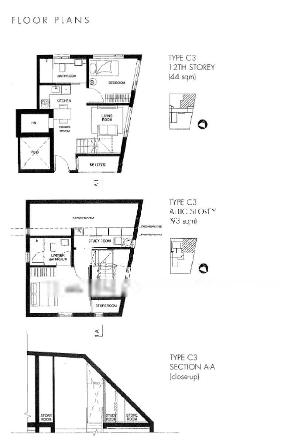 (2 Bedroom + Study , 2 Bathroom and store room )