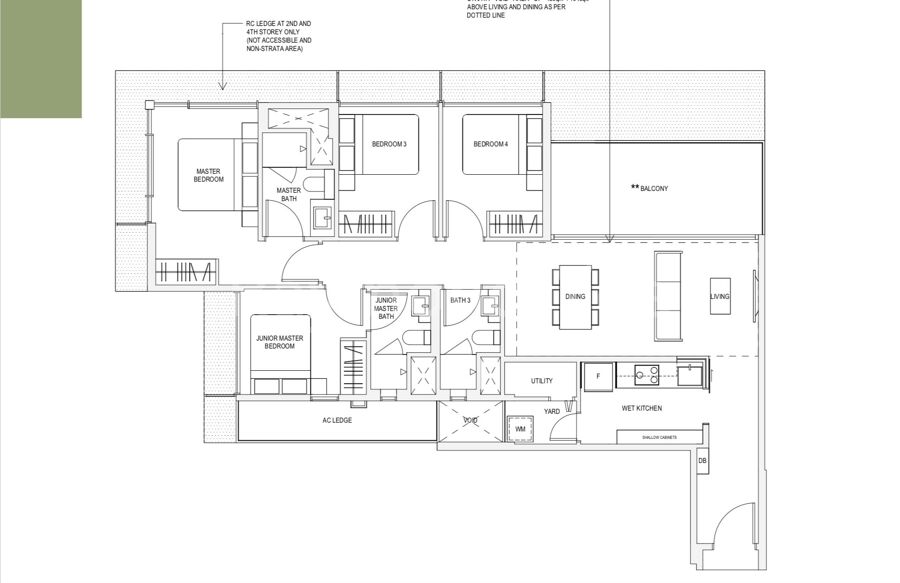 Project Description: Four blocks of 5-storey residential flats with three 2-storey strata landed houses