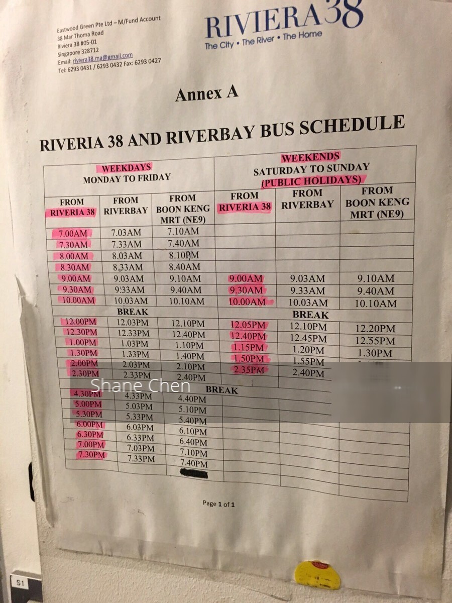 * Shuttle bus from condo to Boon Keng MRT