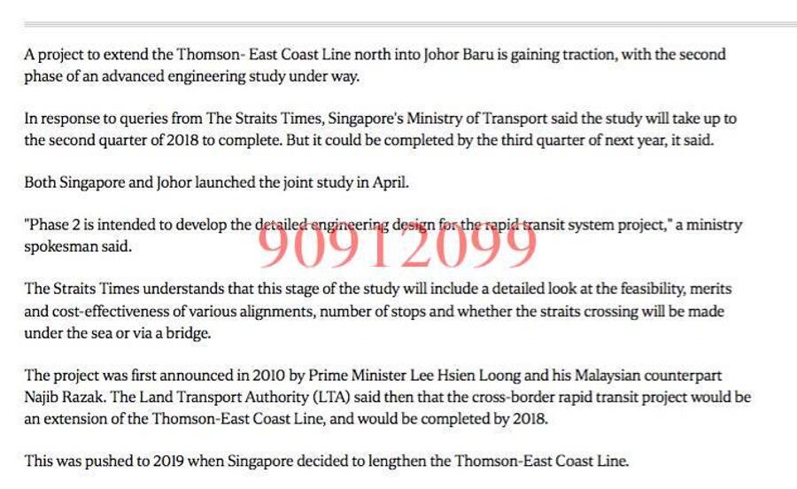 DOORSTEP MRT (THOMSON EAST LINE) TAKE U TO JB AND CHANGI AIRPORT