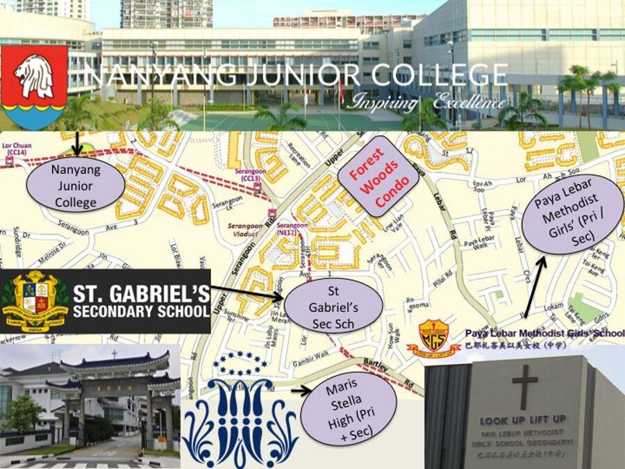 c) Reputable schools in the vicinity include Paya Lebar Methodist Girls' Primary and Secondary Schools, Maris Stella High and Nanyang Junior College.