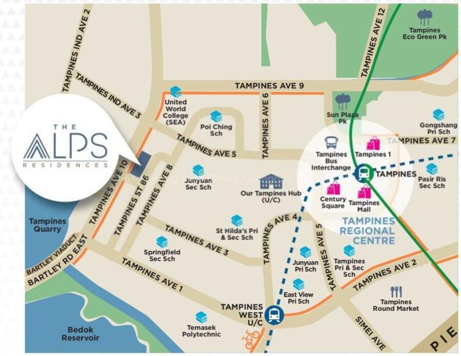 Stay within reach with Bartley Viaduct TPE, PIE, ECP, KPE & Tampines West (DT31) Downtown Line 3 MRT Station