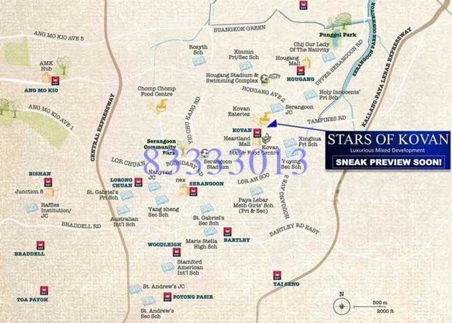 Stars of Kovan is a 99-years leasehold mixed-development with residential and commercial located at Upper Serangoon Road, which is within the North-East Region of Singapore. This Rare Kovan Treasure is just situated next to the Kovan MRT (NE13), with plenty of amenties & famous eateries such as Heartland Mall, Kovan Food & Market, etc. Nearby good schools like Paya Lebar Methodist Girls, Serangoon JC, Stanfield College! Well-connected island-wide via KPE, CTE, PIE!