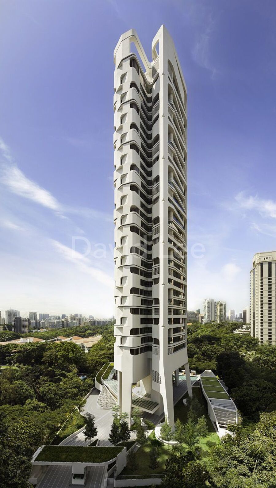 Ardmore Residence is an architecturally distinct residential tower by Ben van Berkel of UNStudio. The vision for Ardmore Residence is to create uplifting living spaces using natural light and panoramic perspectives of the city. While the bold silhouette exudes a commanding presence from afar, residents and visitors to Ardmore Residence are presented with an intimate attention to design details, from the curve profiles of the interior walls and columns to the grass-inlaid driveway".